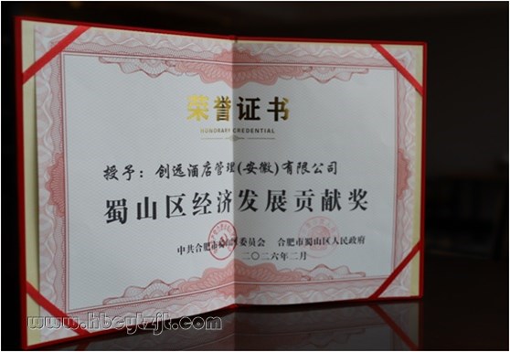 創遠酒店管理公司榮獲 合肥市蜀山區年度“經濟發展貢獻獎”