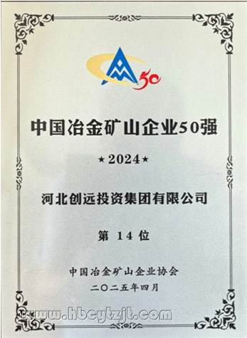 近日,中國冶金礦山企業協會發布“2024年中國冶金礦山企業50強”榜單,河北創遠投資集團有限公司憑借卓越綜合實力位列第14名,展現出強勁的發展勢頭。